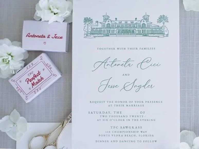 See more examples of custom Florida Wedding designs featuring art by Alexa’s Illustrations: